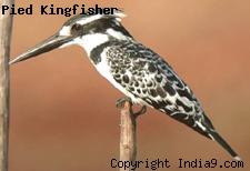 Pied Kingfisher is a common black and white crested Kingfisher. The bird is characterized by its large size, long bill, fluttering flight, black-and-white plumage and squeaky call.
