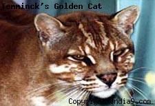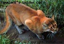 Temminck's Golden Cat lives in dense tropical or sub-tropical forest, though it has also been spotted at altitudes up to 10,000 feet in the eastern Himalayas. It is a nocturnal species.