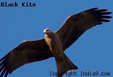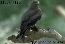 Black Kite (Milvus migrans) is a medium-sized (47 to 55 cm) bird of prey. The crown and nape streaked with white or gray. Its eyes are brown or yellowish brown. The plumage is actually dark brown, with spotted light brown and rufous markings, particularly on the head, neck and underparts. The tail is forked and barred with darker brown.