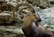 Ibex (Capra ibex) is a solidly built goat. The general color of the coat is yellowish white, more or less tinged with brown and gray.