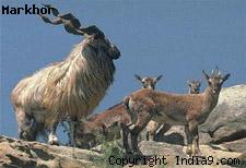 Markhor (Capra falconeri) is the largest goat species. It bears long sharp-keeled horns twisted into a tight or open spiral.