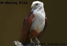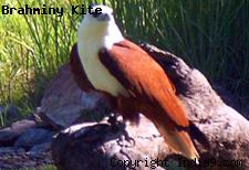 Brahminy Kite (Haliastur indus) is a bird which prefers wet areas. Its head is white, body chestnut coloured with dark wing tips. The bird lives throughout tropical Asia east from India to South China.