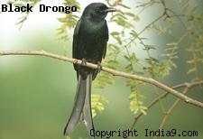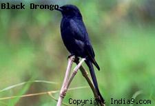 Black Drongo (Dicrurus macrocercus) is a thin and agile glossy black bird with a long and deeply forked tail. It is about 30 cm in size. The bird is a very common breeding resident of