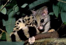 Spotted Linsang is nocturnal and feeds on squirrels, rodents, small birds, lizards and insects. It lives in hollows of trees by building nests with leaves and twigs. The animal is common in Sikkim, Assam, Arunachal Pradesh and other northeastern states.