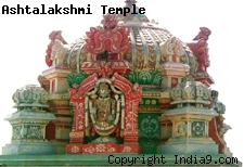 Ashtalakshmi Temple is a highly revered shrine situated in Besant Nagar, on the shores of Bay of Bengal. The architecture of the temple is unique, with the deities installed in four levels. The temple enshrines Goddess Lakshmi and Lord Vishnu as the principal deities. The temple has separate shrine for the Ashtalakshmi forms of Goddess Lakshmi.