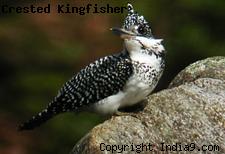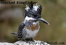 Crested Kingfisher (Megaceryle lugubris) is a huge (41 cm) crested, dark gray and white kingfisher. It is deeply barred grayish black and white above, while the crest is shaggy, black with white streaks. It has a complete white collar, white face, and a black malar streak turning to orange neck patch on males. The long tail is strongly barred black and white. The bill is large and dark.