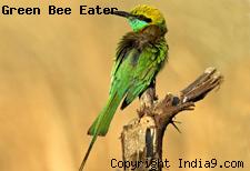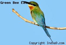 The bird is commonly found in pairs, or parties, in open country on telegraph wires and fence-posts. Bee-eaters mainly eat bees, wasps and ants, which are caught in the air by sorties from an open perch. Before eating its meal, a bee-eater removes the sting by repeatedly hitting the insect on a hard surface. Females lay 4 to 8 spherical white eggs. Green Bee Eater is locally called Patringa.