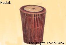 Madal is a drum used in slow rhythms. Though it is widely used in India, the Sambalpuri Madal is quite different from the types used in other parts of the country and is made out of fired clay. Sambalpuri Madal looks like a cylinder. The Madal forms an integral part of the Sambalpuri music and is played along with most of the dance-less songs.